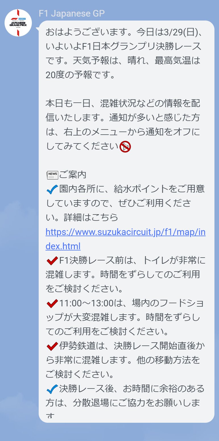 1. Message delivery from the official LINE account “F1 Japanese GP” *Information provided in Japanese only