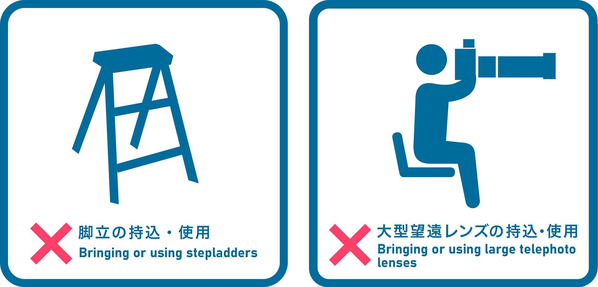 - Use of umbrellas in the spectator seats *except in some areas (please wear a raincoat or poncho while watching in case of rain)