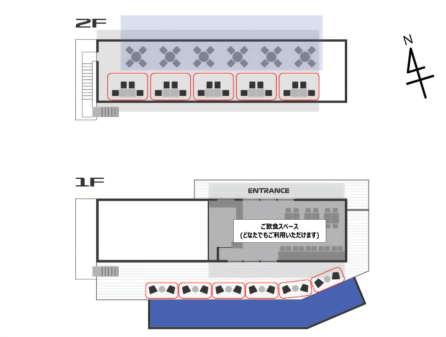 The round table space on the north side of the 2nd floor is a shared area for those holding a GRAN VIEW viewing ticket.