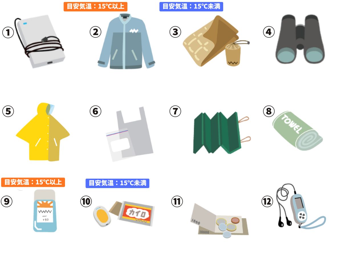 We have published a list of standard items for watching and useful items depending on the temperature on the day, so check here!