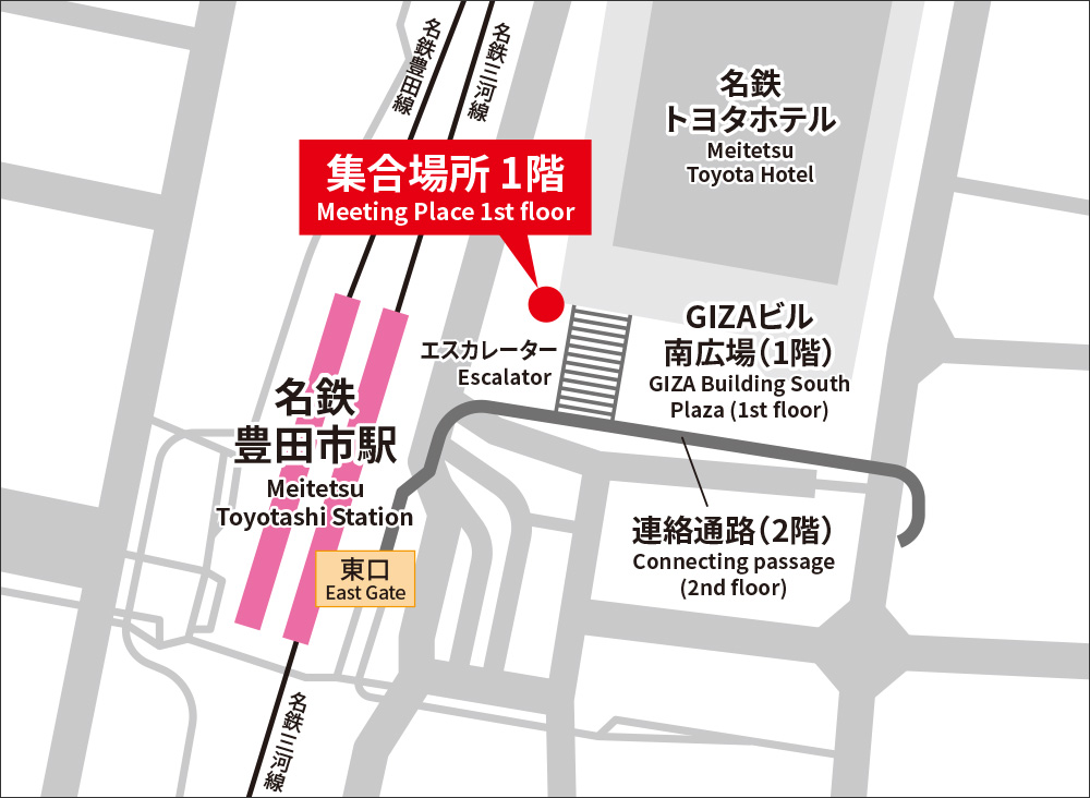 - 名鐵豐田市站=包車巴士=鈴鹿賽車場P9停車場~現場觀賽~鈴鹿賽車場P9停車場=包車巴士=名鐵豐田市站