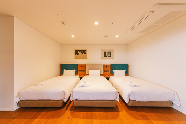 飯店首次引進雙層床,並設置可脫鞋休憩的小高台。營造一進入房間的興奮感。位於飯店客房最高樓層,擁有可一覽多氣大自然的寬敞露台及露天風呂,72m²的大型客房內配備高音質喇叭與足部按摩機。
