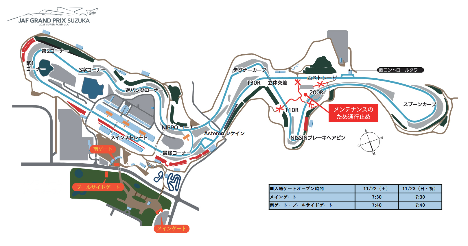 僅限使用C、D、E、西賽道區域,但有各種注意事項,請確認以下內容。